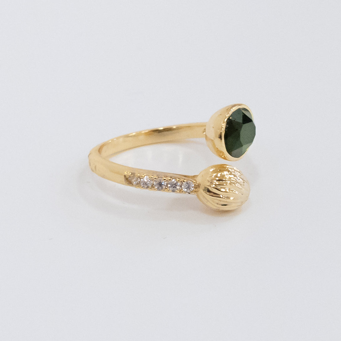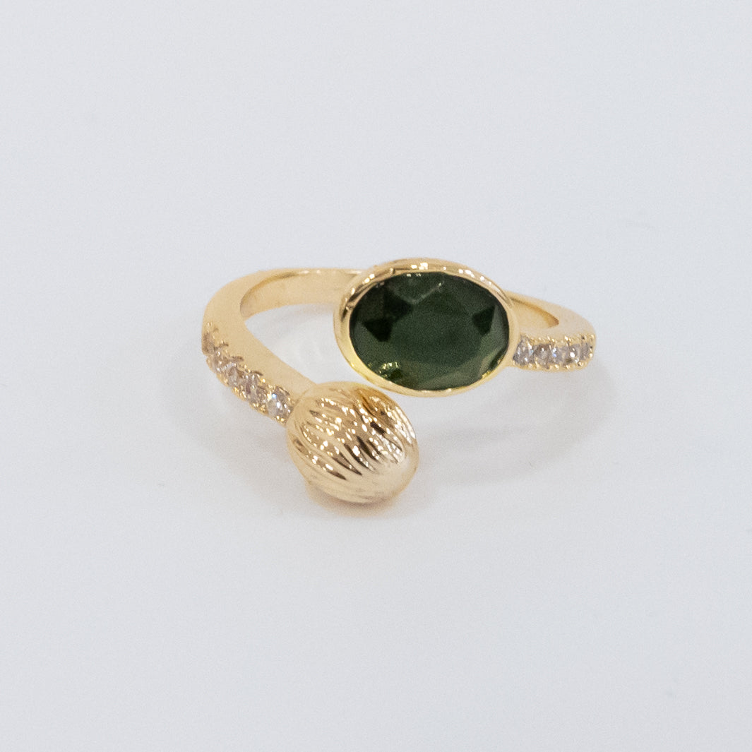 Barbieri - Anello metallo placcato oro con cristallo nero