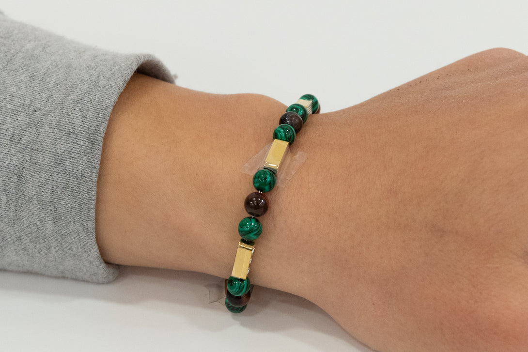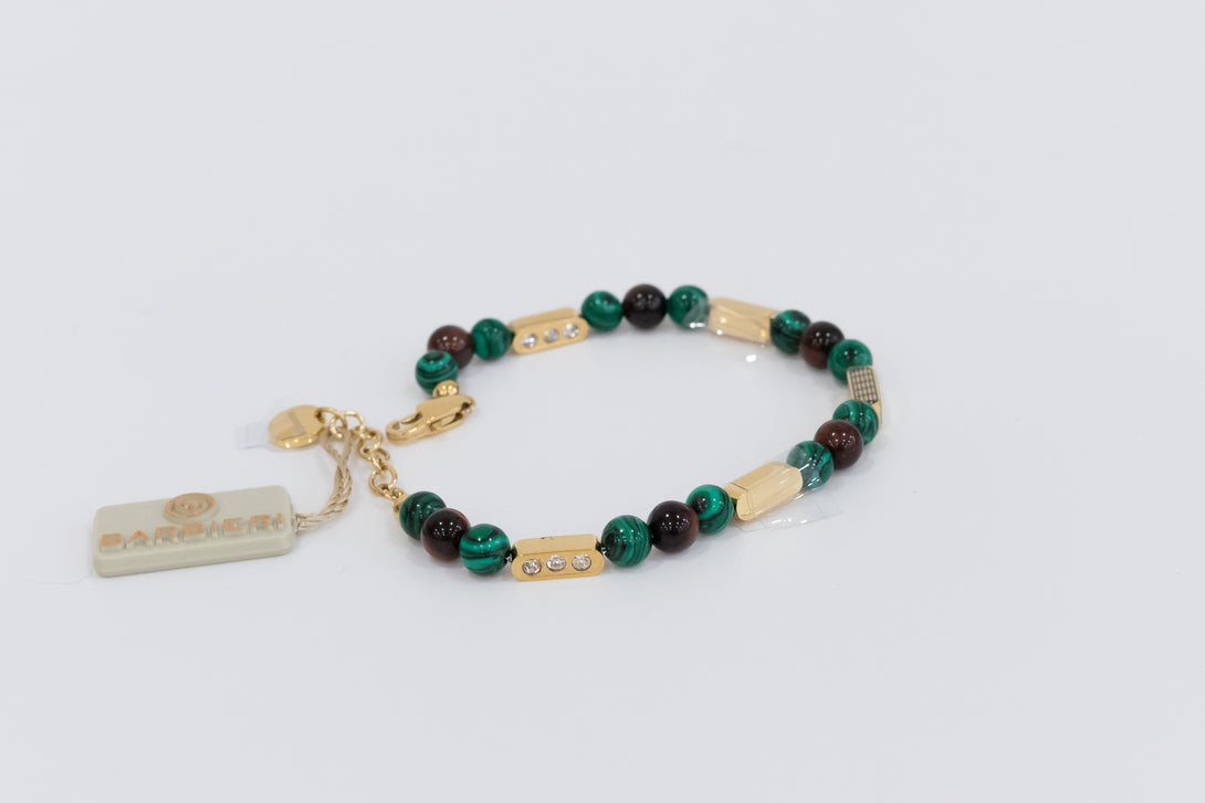 Barbieri - Bracciale in acciaio dorato con pietre verdi e bordeaux