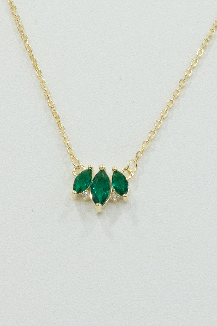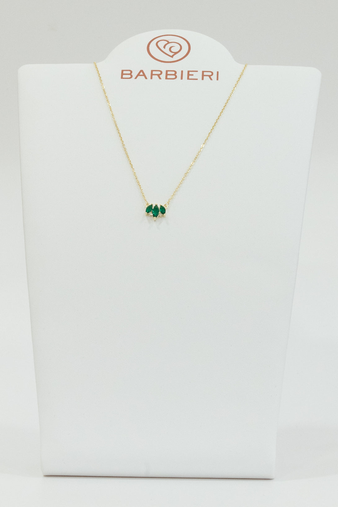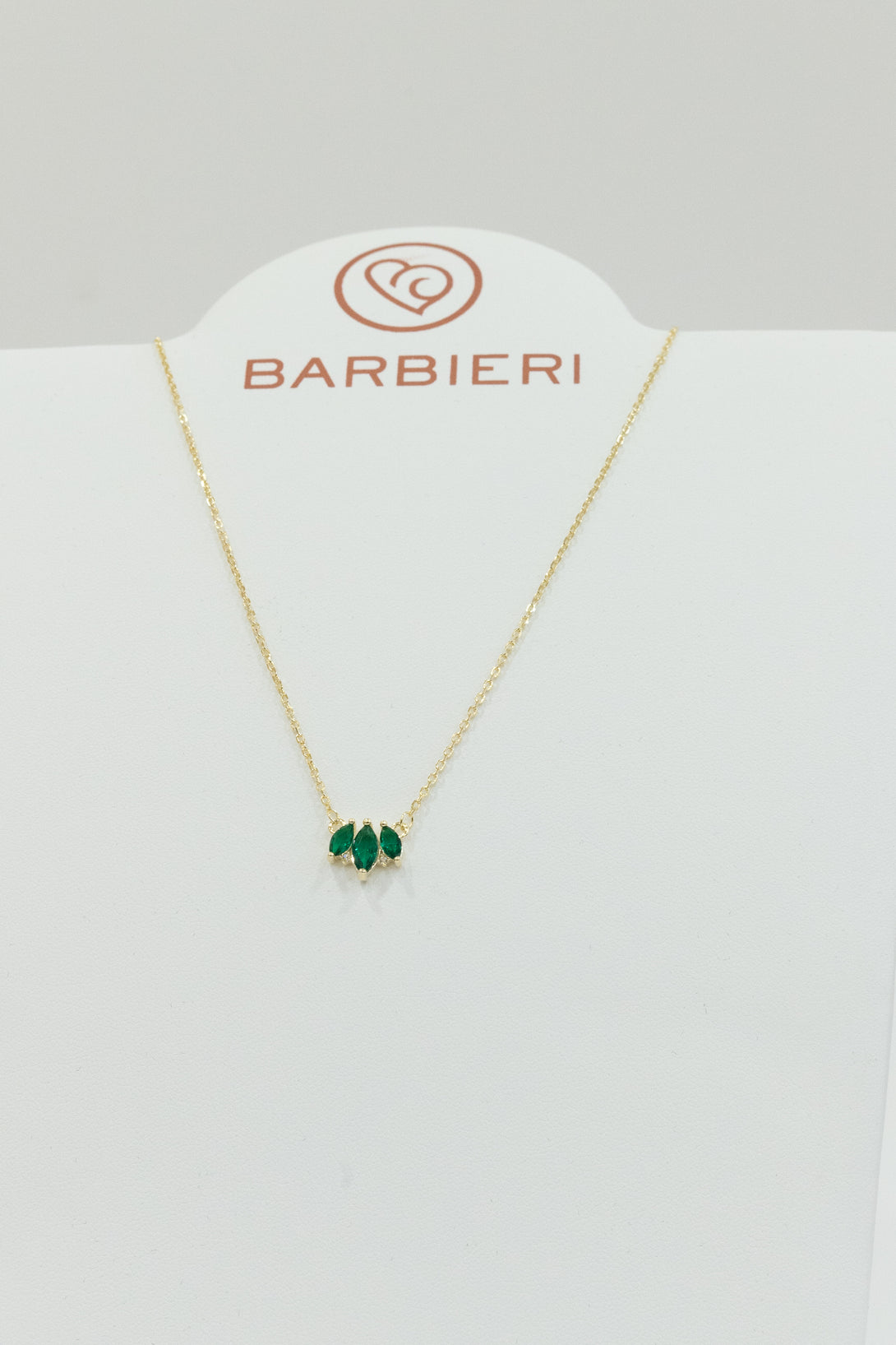 Collana Barbieri in argento placcato oro NICKEL FREE con ciondolino con zirconi verdi. Chiusura con moschettone. Chiusura: 40+10 cm