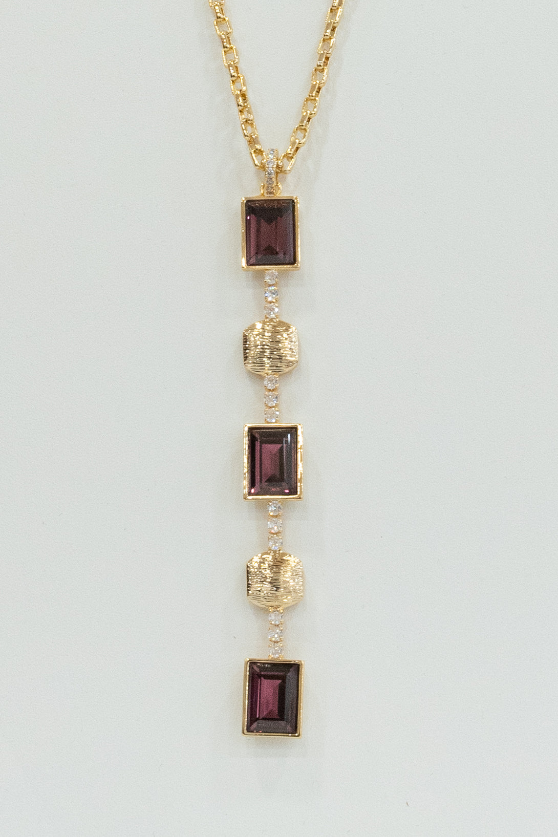 Barbieri - Collana in metallo placcata oro con cristalli viola