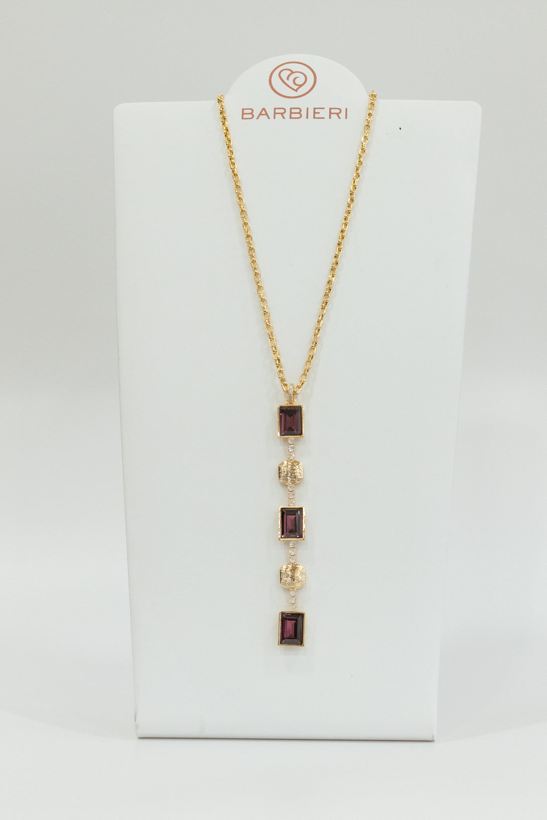 Collana Barbieri in metallo placcata oro NICKEL FREE con cristalli viola. Chiusura con moschettone.