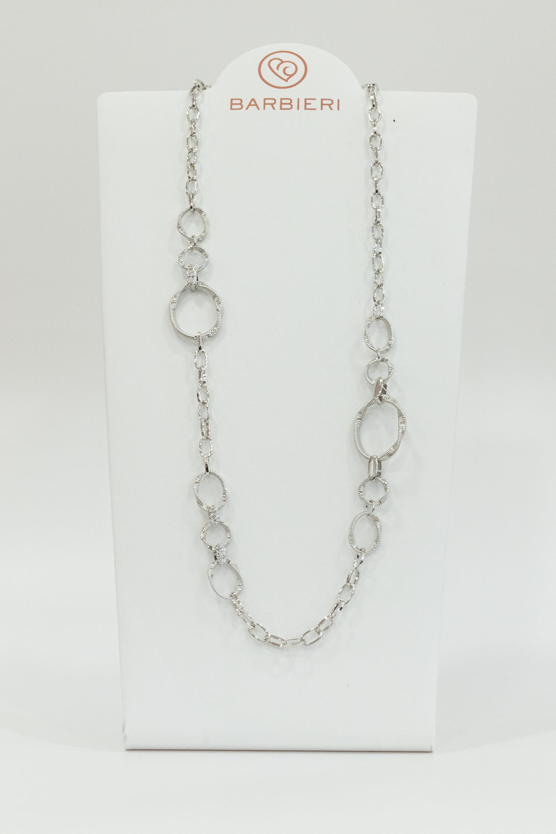 Collana Barbieri in metallo rodiato NICKEL FREE con strass. Chiusura con moschettone.