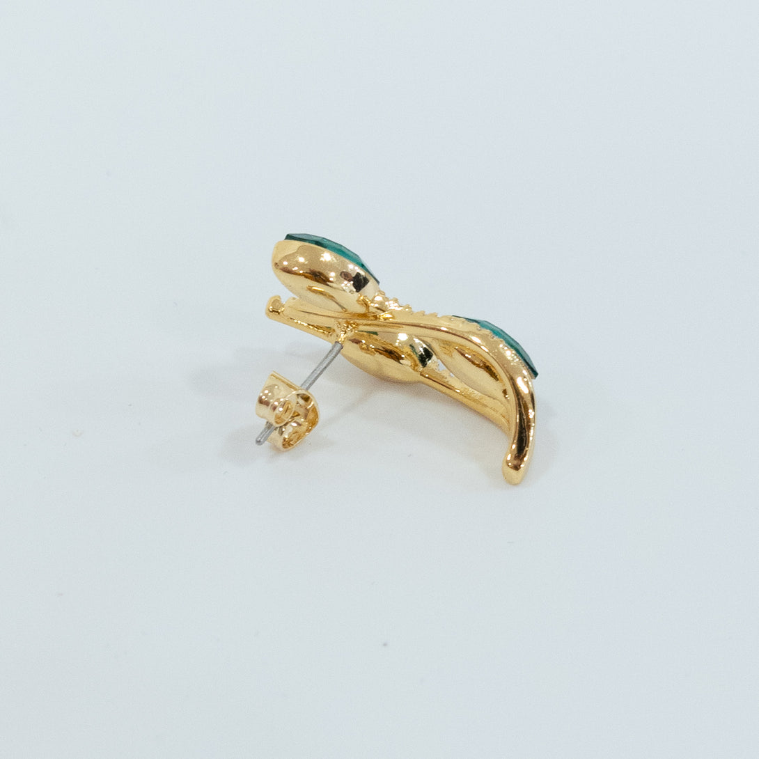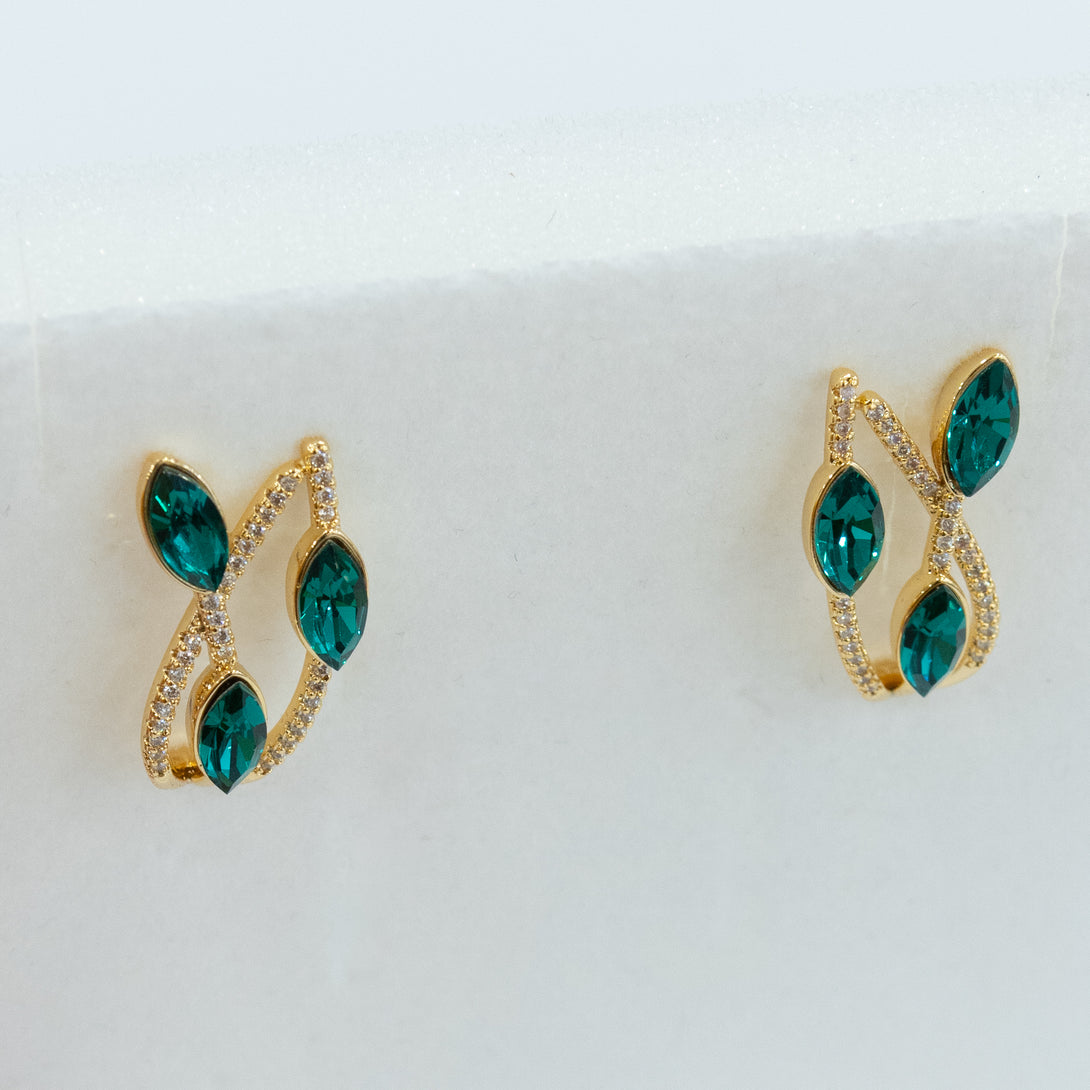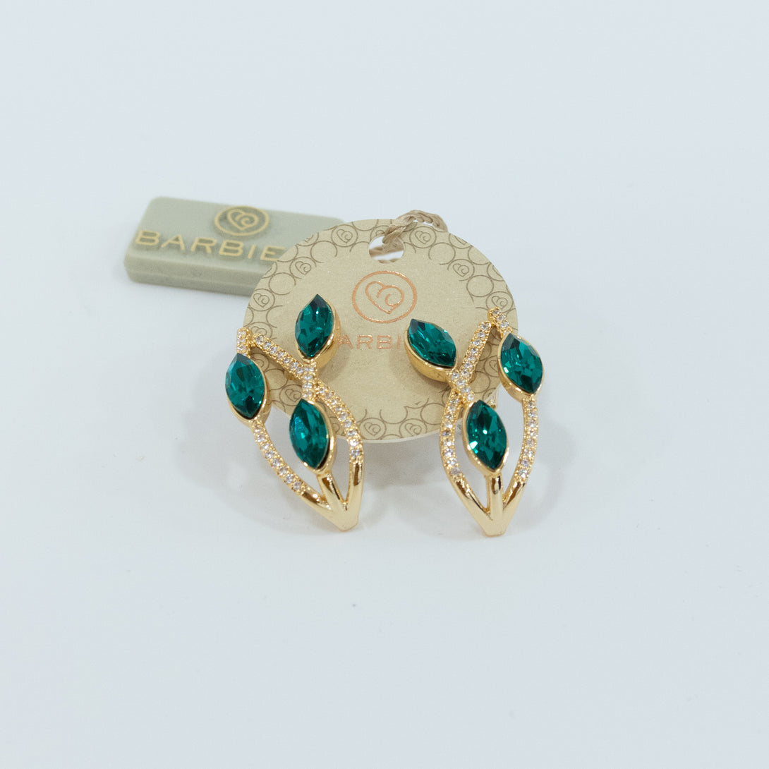 Orecchini a bottone Barbieri in metallo placcato oro NICKEL FREE, con cristalli verdi. Chiusura classica con vite a farfalla.