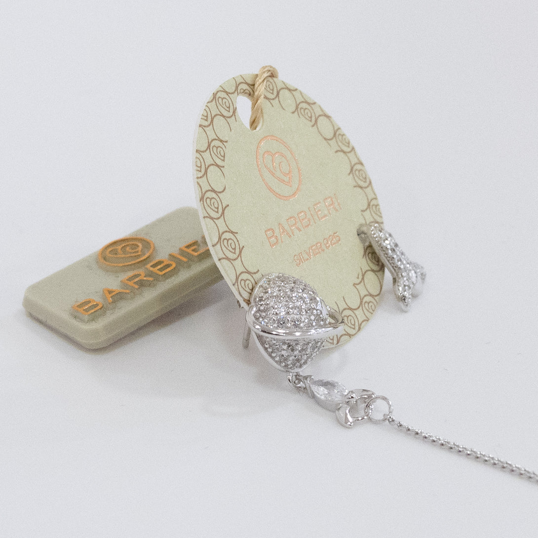 Barbieri - Orecchini a bottone in metallo rodiato con catenina pendente