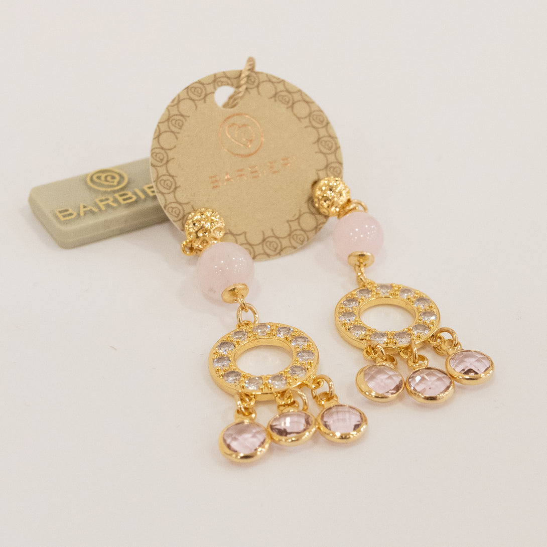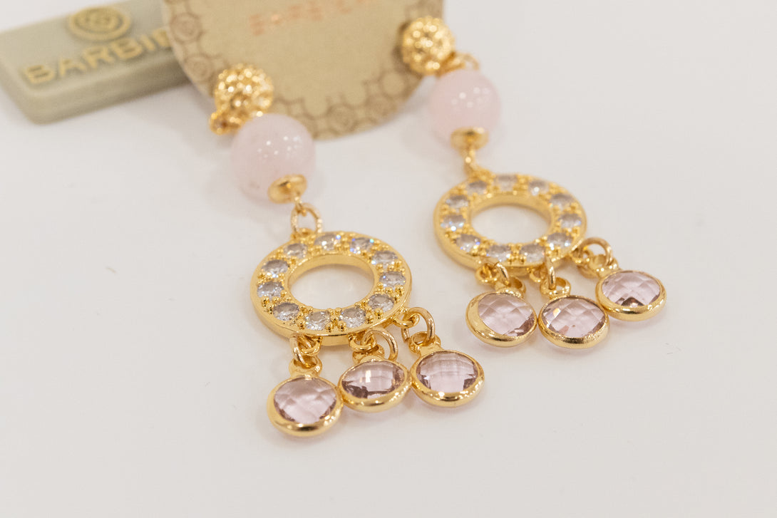 Barbieri - Orecchini pendenti in metallo placcato oro con quarzo rosa e fumé