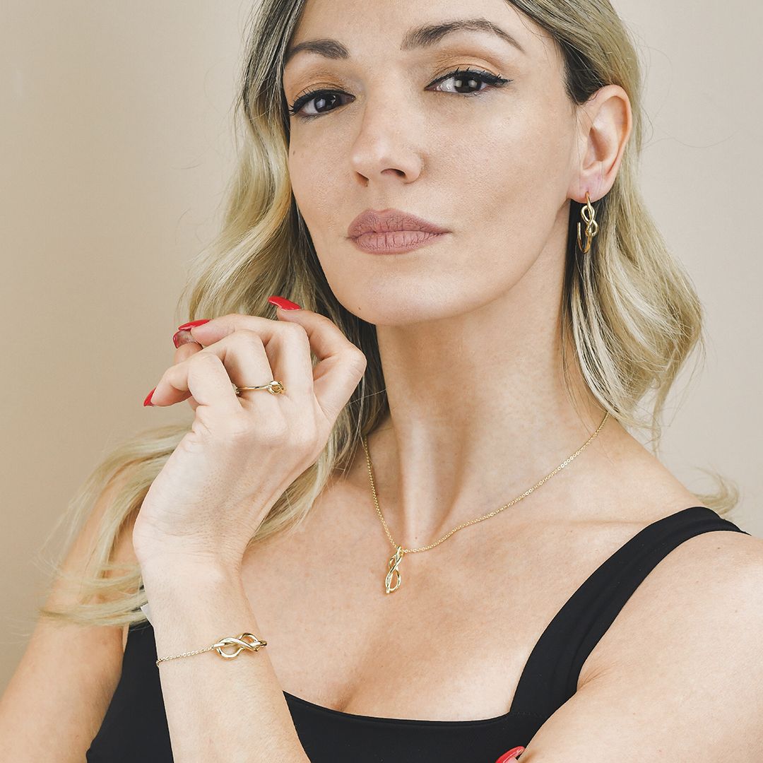 Anello in argento placcato oro giallo con centrale intrecciato a forma di infinito.