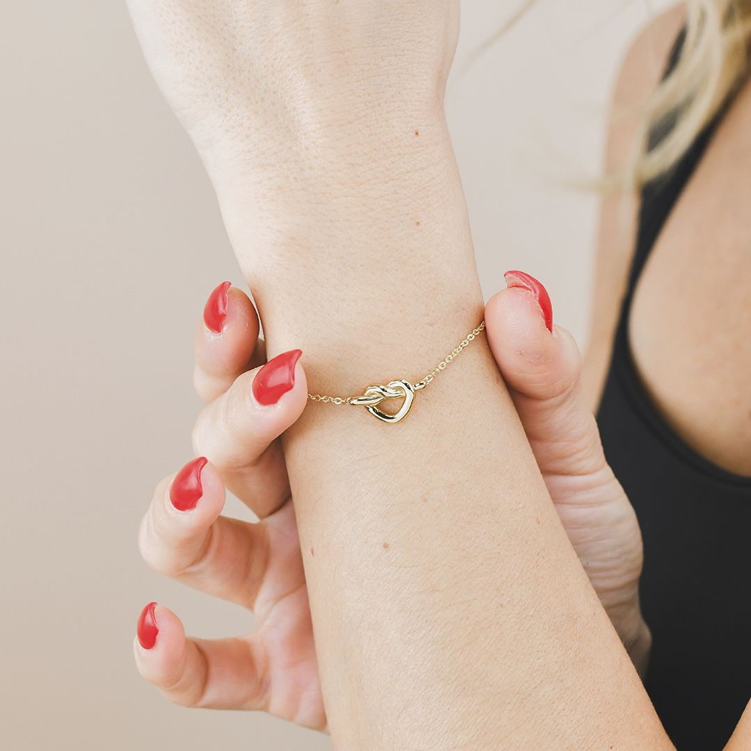 Bracciale in argento placcato oro giallo con centrale intrecciato a forma di cuore.