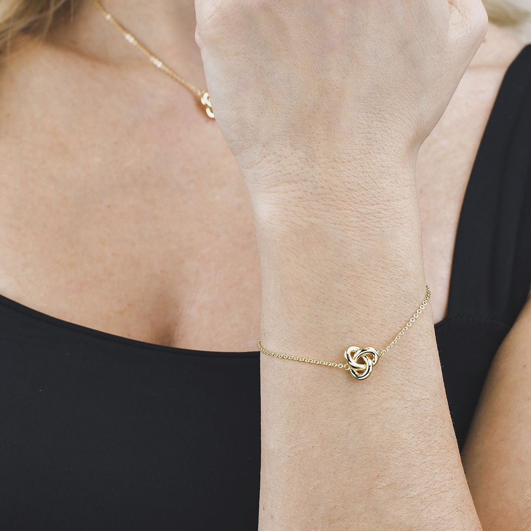 Bracciale in argento placcato oro giallo con centrale intrecciato a doppio nodo.