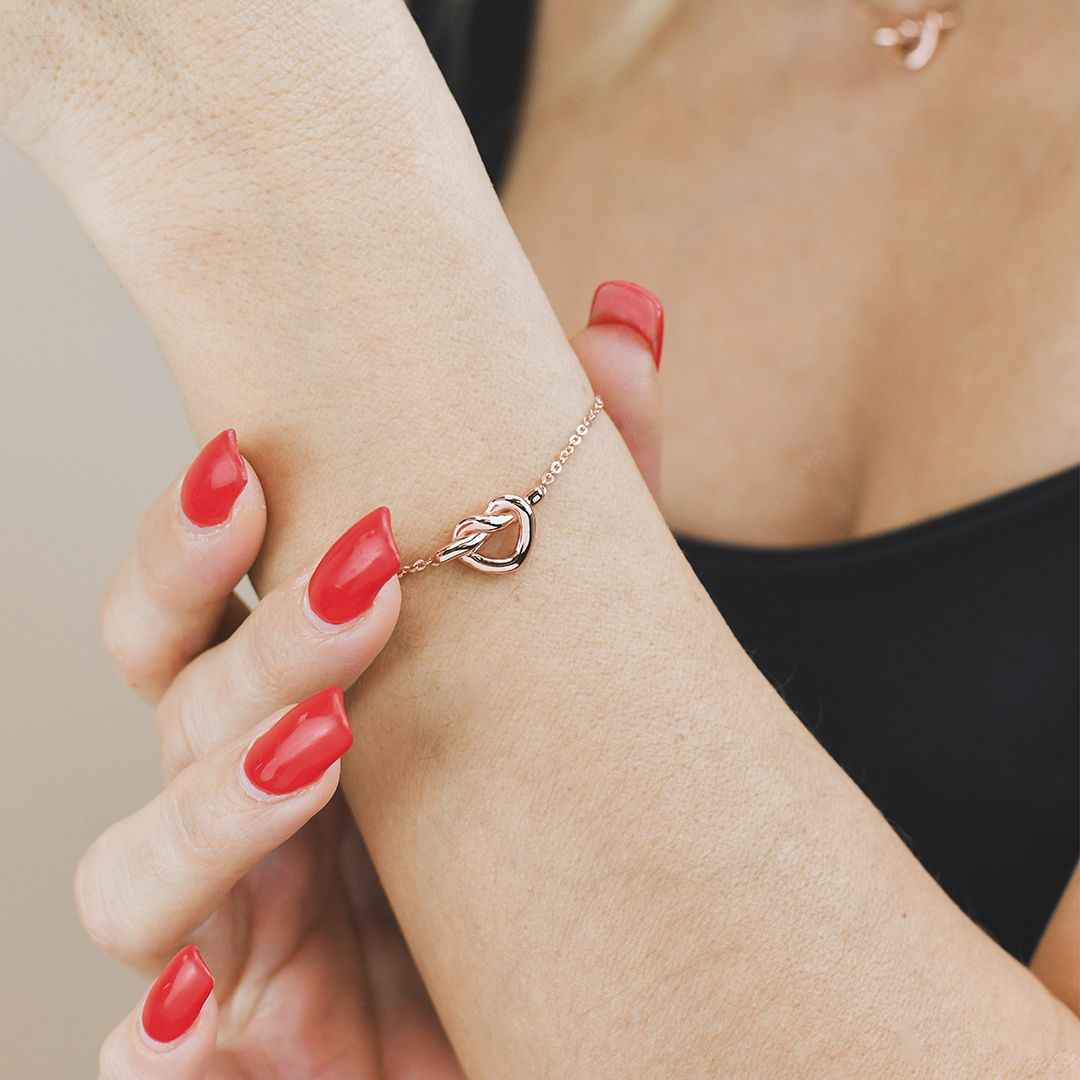 Bracciale in argento placcato oro rosa con centrale intrecciato a forma di cuore.