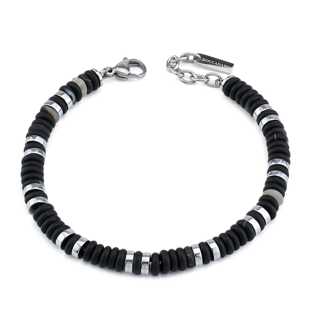 Boccadamo - Bracciale uomo con agata nera ed ematite rodio