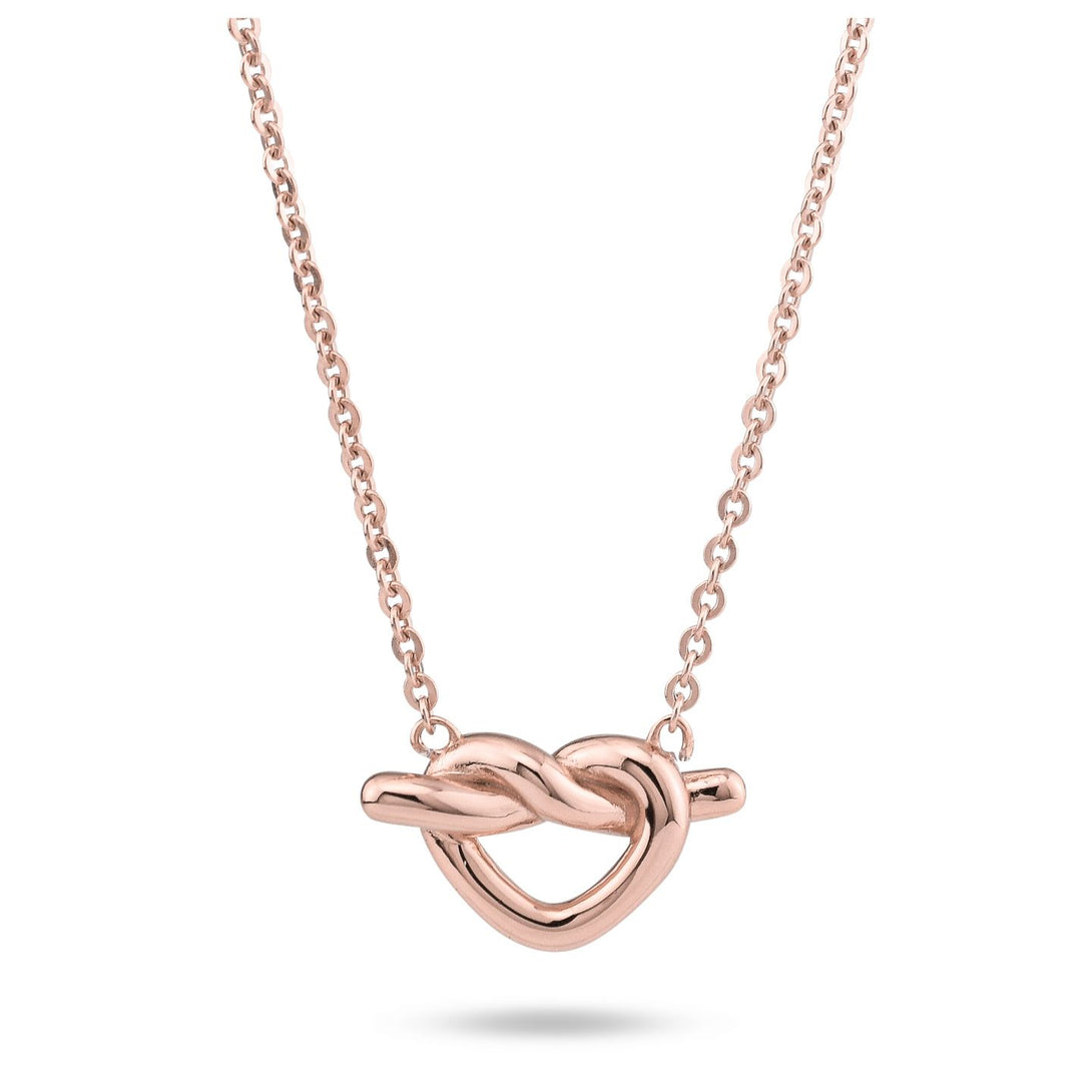 Collana in argento placcato oro rosa con centrale intrecciato a forma di cuore.