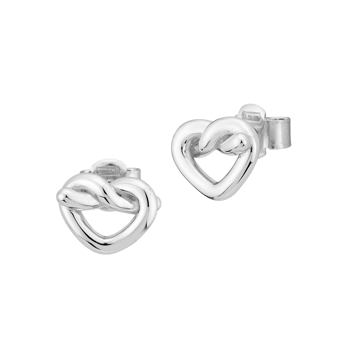 Orecchini in argento rodiato con centrale intrecciato a forma di cuore traforato.