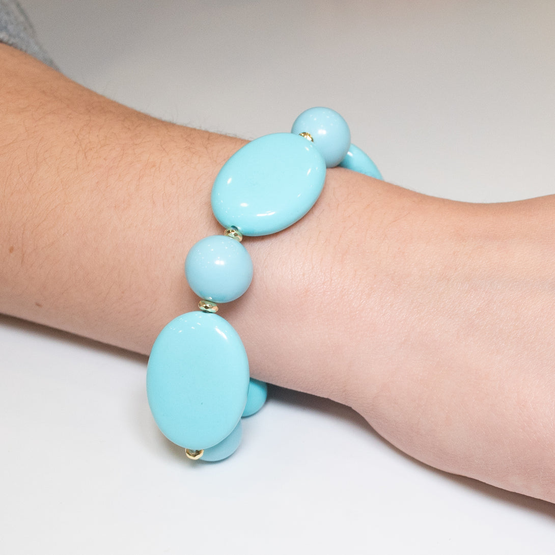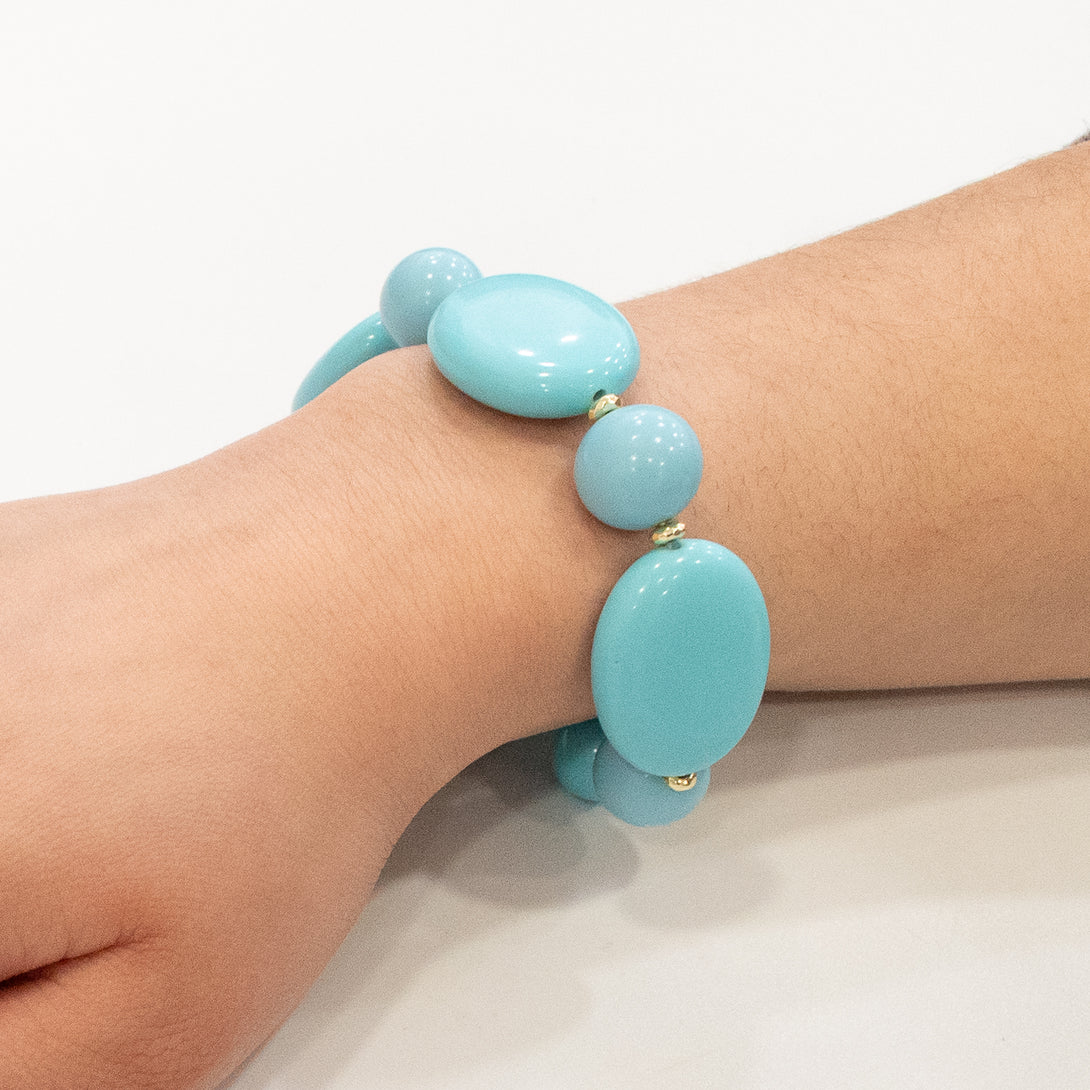 Confuorto - Bracciale elastico in pasta di turchese con dettagli dorati