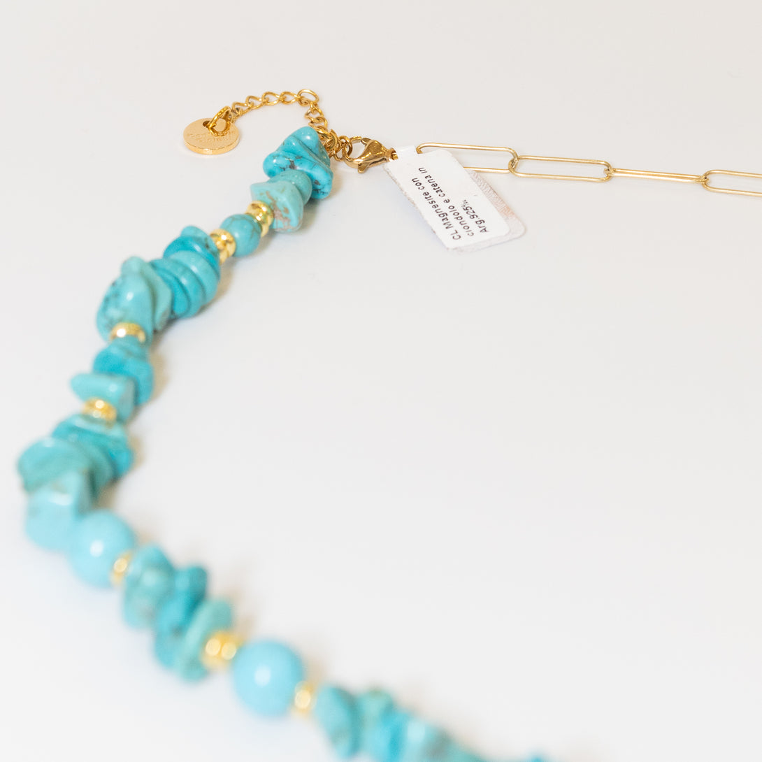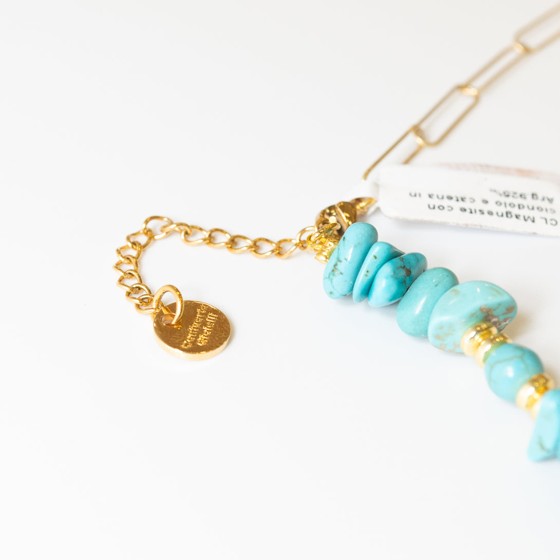 Collana corta Confuorto con pendente in magnesite e catenina in argento dorato 925. Chiusura con moschettone.