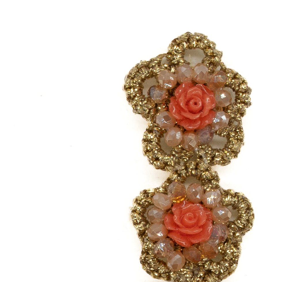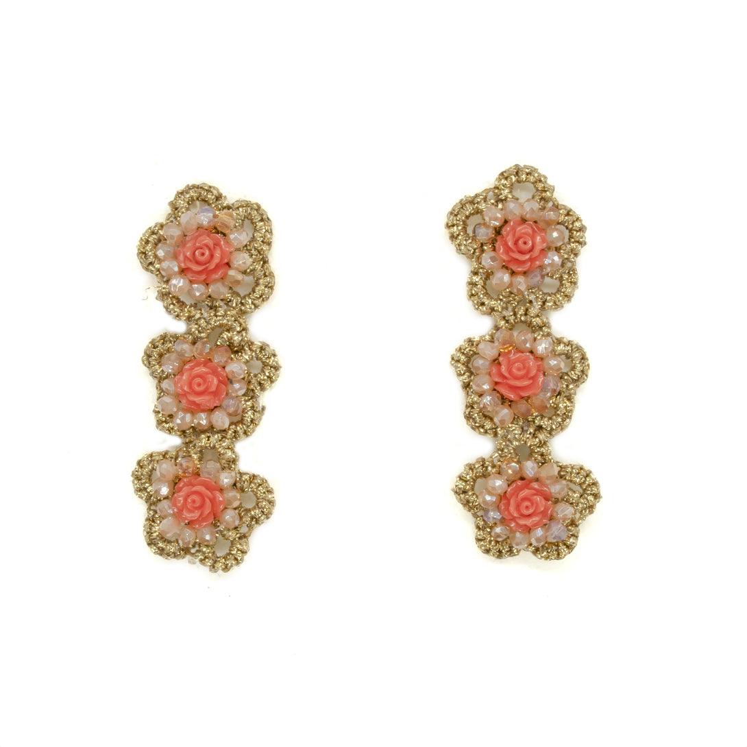 Orecchino Confuorto, semirigido, in argento con fiore in corallo. Chiusura classica con vite a farfalla. Lunghezza: 5cm.