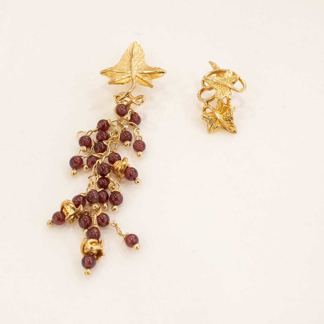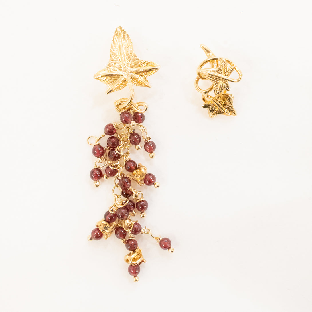 Orecchini Coral Waves pendenti in granato rosso. Chiusura classica con vite a farfalla.