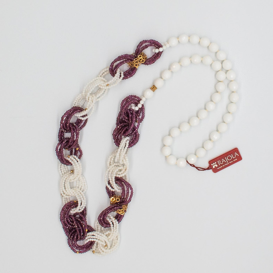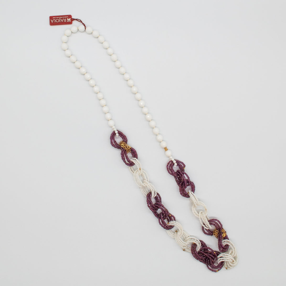 Collana Rajola collezione Infinity in pasta bianca e granato oro. Unico giro da 45cm