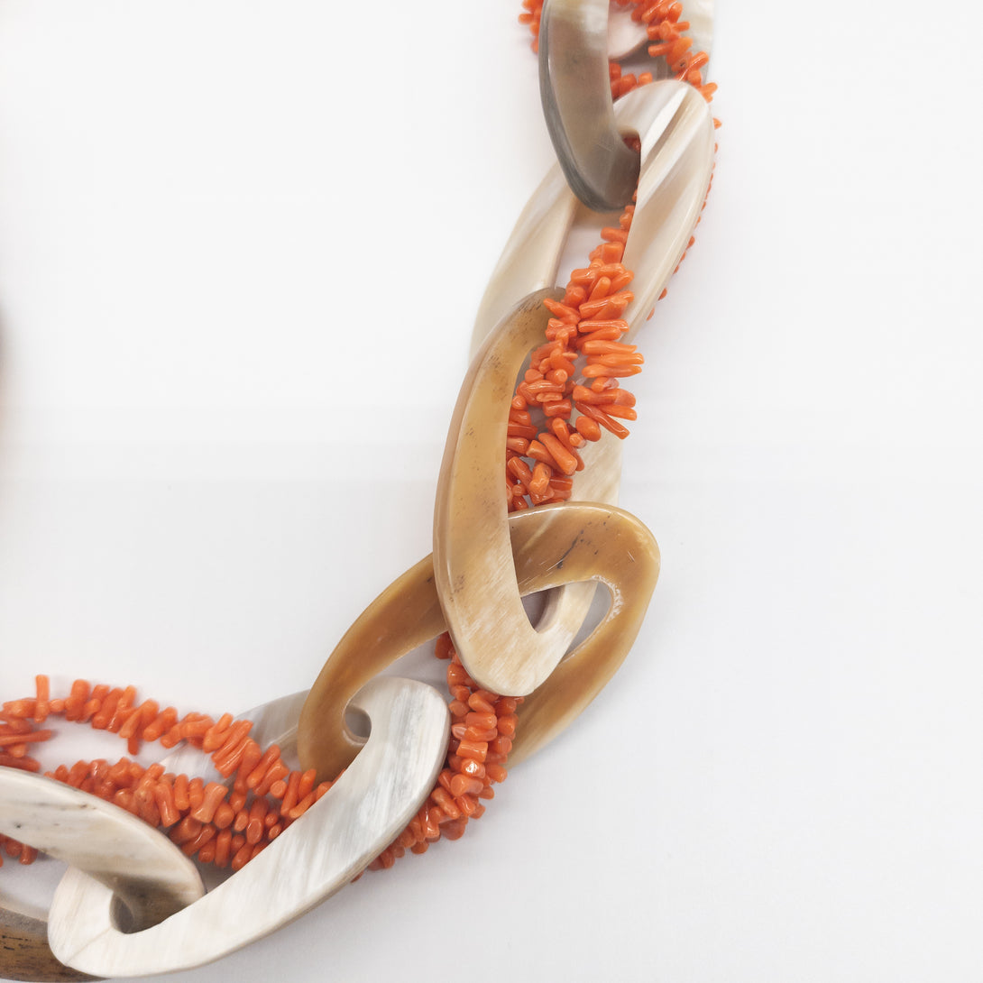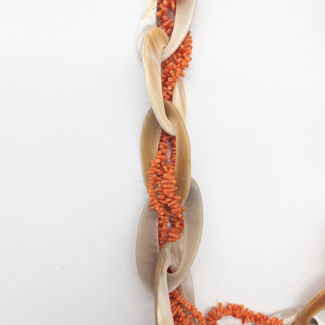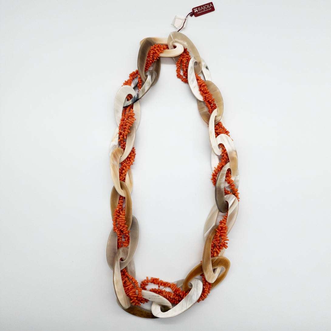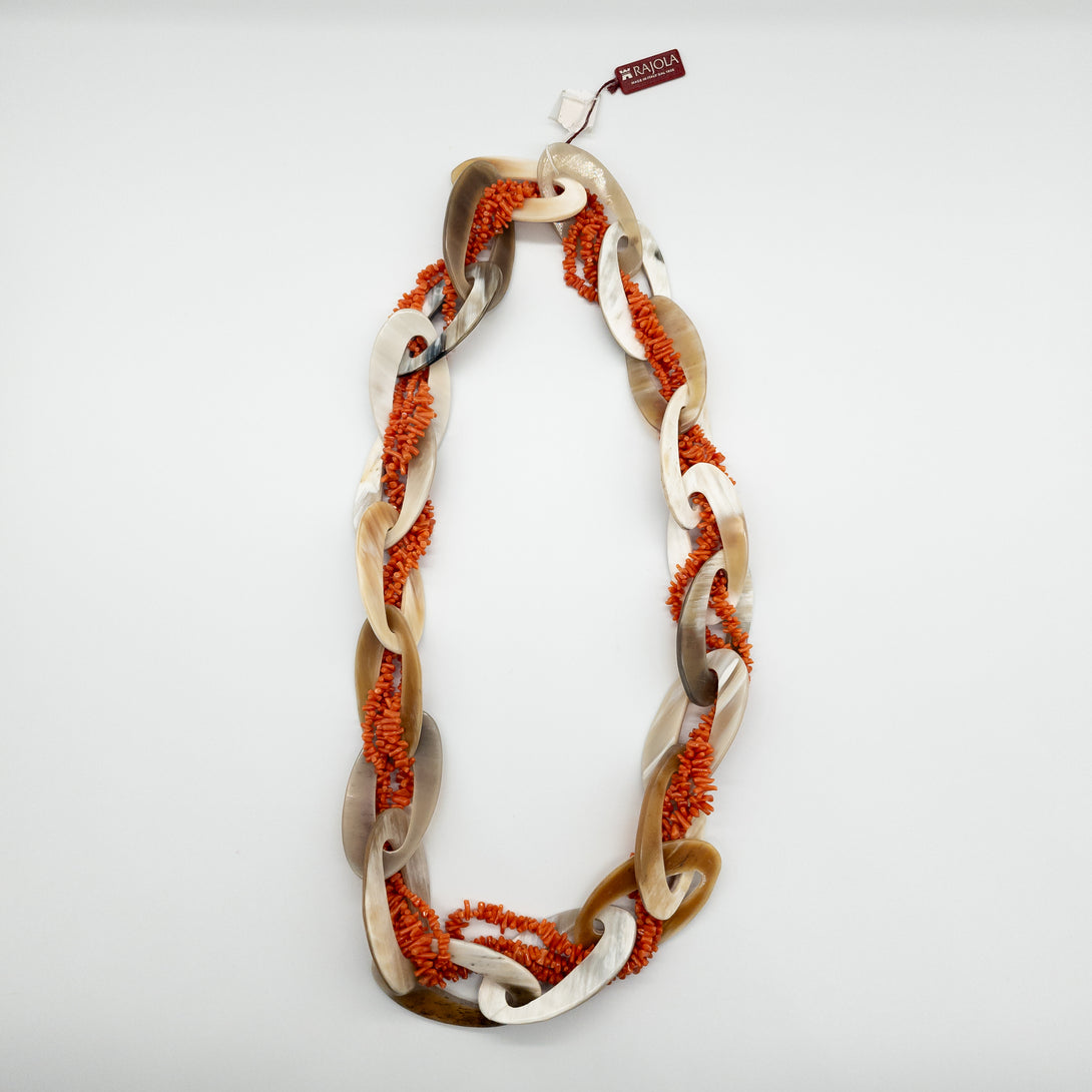 Collana Rajola collezione Mistero Sciacca con corallo di Sciacca e anelli in corno naturale. Unico Giro da 45cm